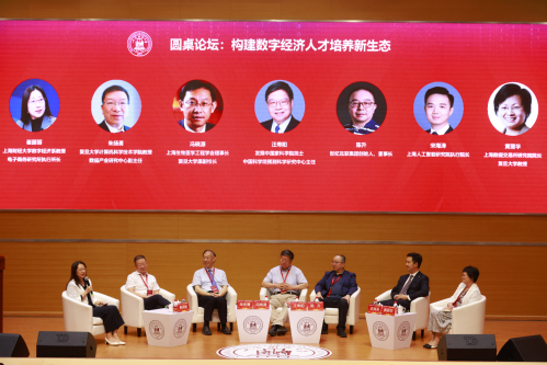圆桌论坛环节由上海财经大学电子商务研究所执行所长、数字经济系教授崔丽丽主持。发展中国家科学院院士、中国科学院预测科学研究中心主任汪寿阳,上海生物医学工程学会理事长、复旦大学原副校长冯晓源,上海数据交易所研究院院长、复旦大学管理学院教授黄丽华,世纪互联集团创始人、董事长陈升,上海人工智能研究院执行院长宋海涛,复旦大学计算机科学技术学院教授、数据产业研究中心副主任朱扬勇等六位专家学者以“构建数字经济人才培养新生态”为主题展开了深入探讨与交流,共同展望了数字经济未来的发展趋势,并为推动数字经济人才培养新生态的建设建言献策。