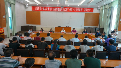 7月12日,上海财经大学与云南省元阳县捐赠签约仪式暨“先星-上财奖学金”颁发仪式在元阳会堂举行。我校副校长方华,78级金融班校友、上海东洲资产评估有限公司董事长王小敏,元阳县主要领导以及获奖学生代表出席仪式。会议由我校赴元阳挂职干部、元阳县副县长袁海萍主持。