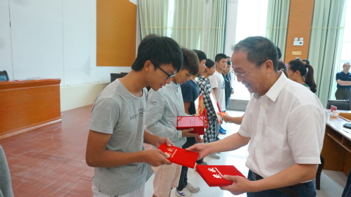 方华副校长和王小敏校友为获奖学生颁奖。