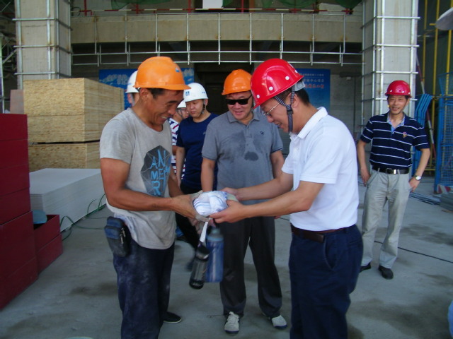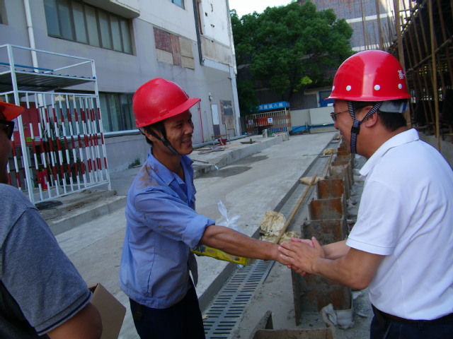 上午8时许,方华副校长一行首先来到主校区科研实验中心施工现场,并向现场工人发放了慰问品。他向为校园建设作出重要贡献的全体工作人员表示感谢,对在炎炎夏日仍坚持工作在高温一线的建设人员表达慰问。同时,他希望总包单位在工人生活休息饮食方面一定要做到安全、合理、保质、保量,防暑降温措施要到位;希望总包单位继续发扬铁军精神,继续把主校区科研实验中心项目建设成为精品工程。
