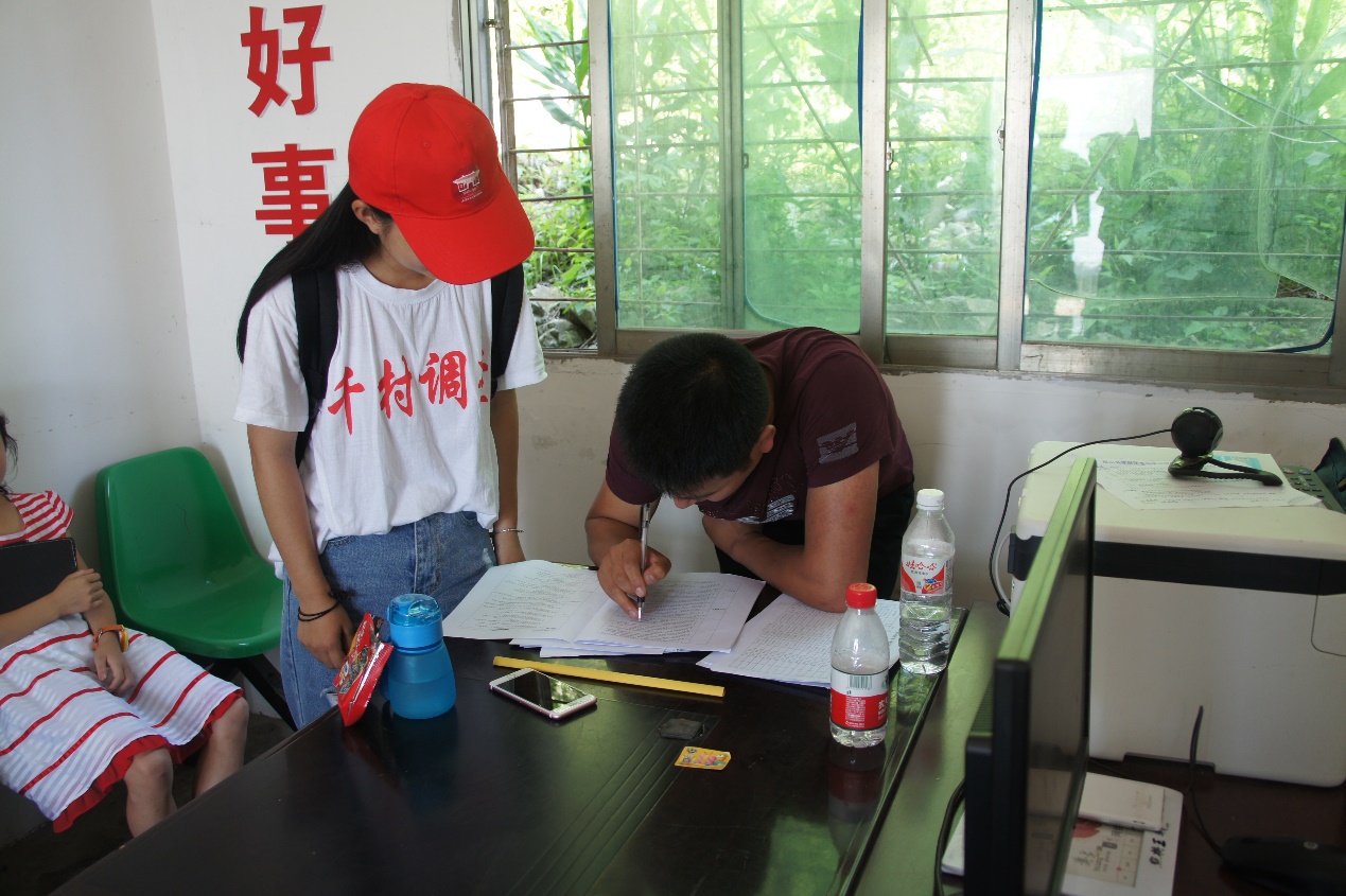 7月11日,调查小组再次从巫山县城出发,沿着崎岖的山路,历时三个半小时到达了比五星村海拔更高的袁都村。为了避免同学晕车的状况再次出现,调查小组的同学提前服用了晕车药,最终安全到达袁都村。袁都村距离县城更远,交通也并不发达,所以村中与外界交流较少,导致一些村民对互联网了解不深入,填写问卷时遇到了一些困难,调查小组的同学耐心地为村民解答疑惑。