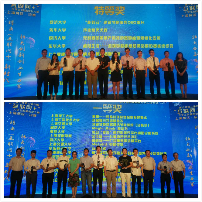 7月23日,“建行杯”第三届中国“互联网+”大学生创新创业大赛上海赛区决赛在同济大学举行。本次大赛自4月份启动以来,吸引了70余所高校和科研院所的近15000余人次报名参赛,参赛项目作品数3500余件。经过为期3个月的遴选和激烈的角逐,最终有24支队伍进入决赛。我校两支队伍入围决赛,分别获得特等奖一项,一等奖一项。除外,在本次大赛中,我校参赛队伍还获得三等奖三项,优胜奖一项,这是我校参加此项赛事的最好成绩。我校副校长、创业学院院长刘兰娟带队参加本次决赛,上海市教委主任苏明等领导出席。