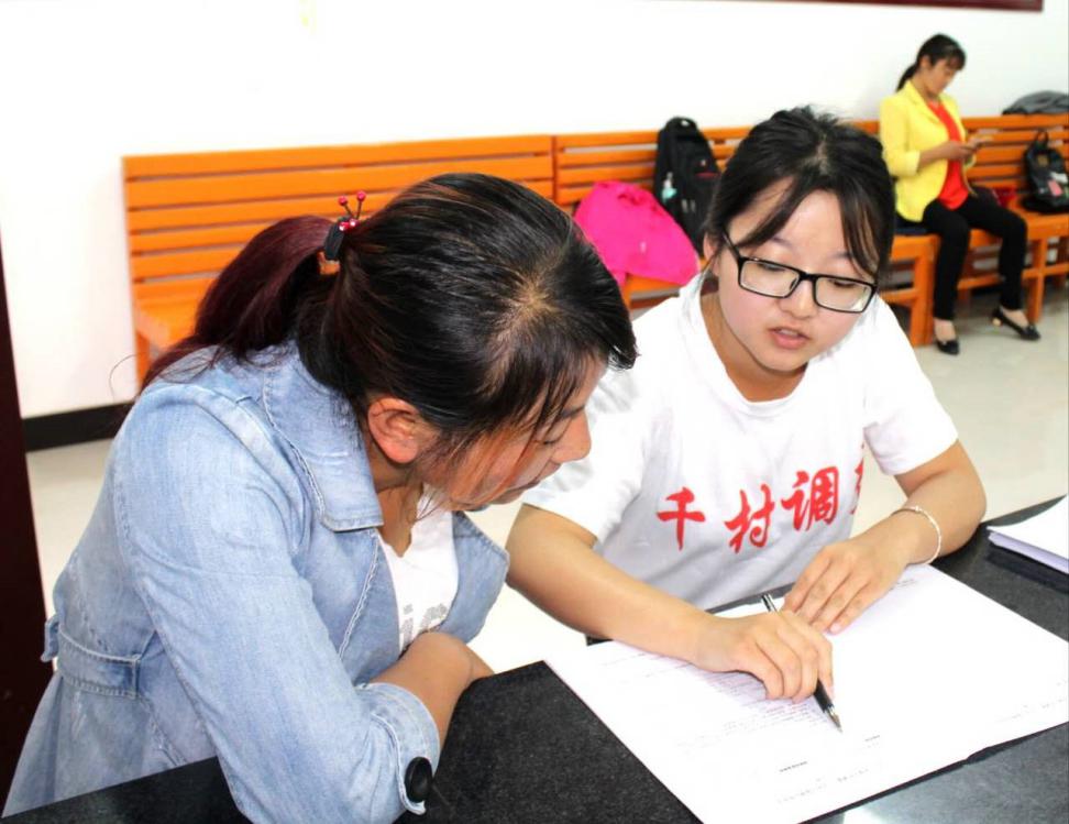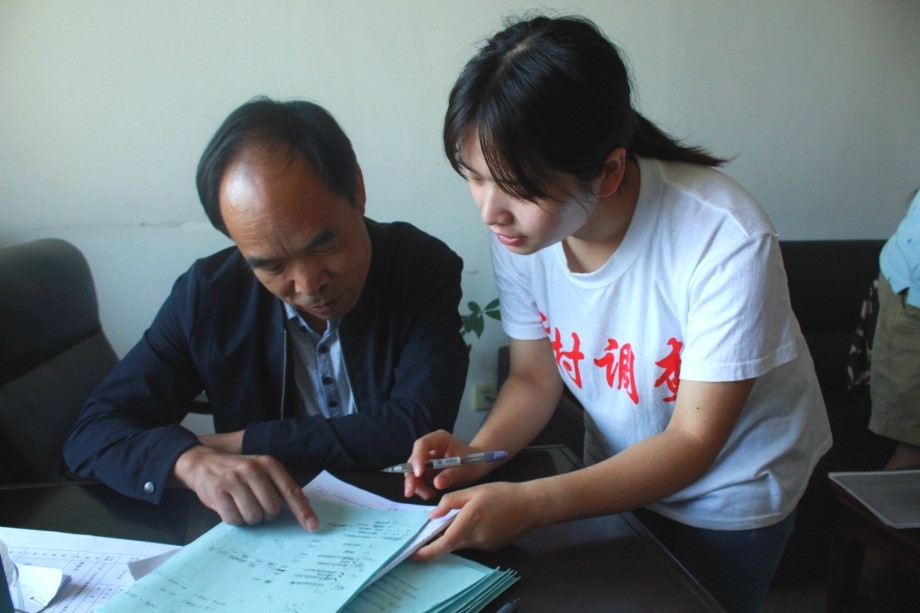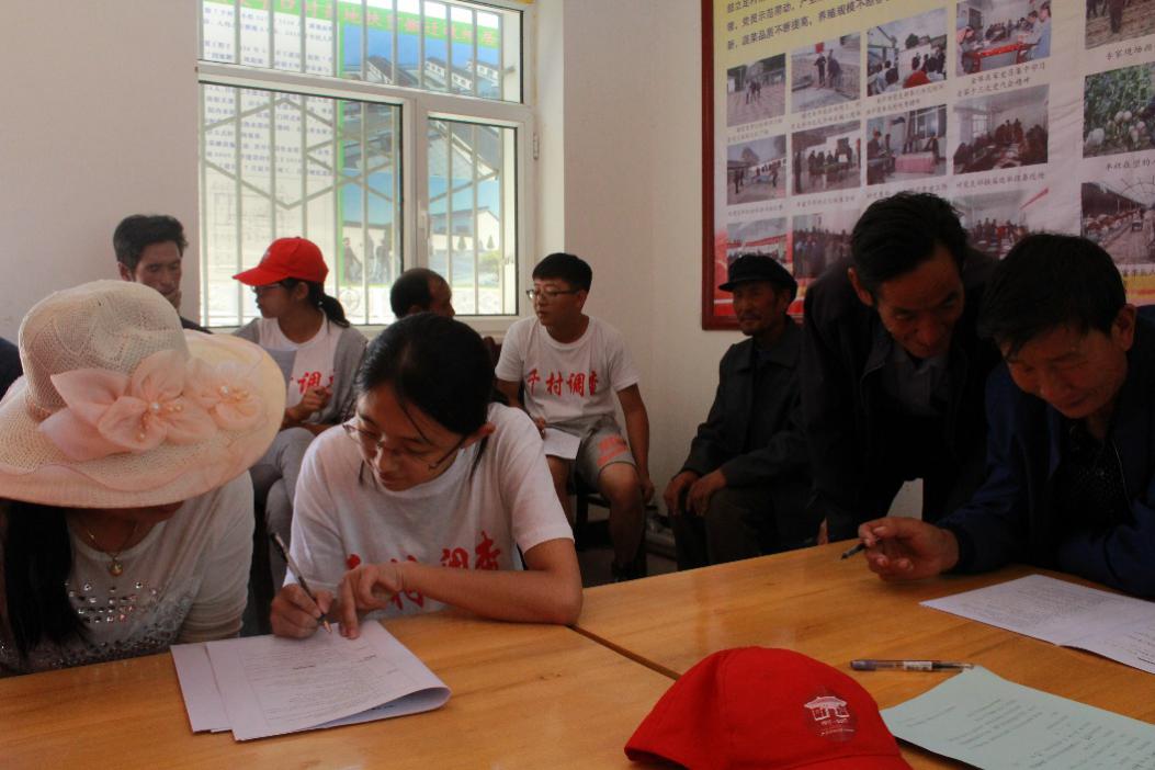 调查完三坝村,小组随即来到了泗水村。在村主任的协助下,小组在村会议室开展了采访工作。在不停的耐心解释下,大家的嗓子都已沙哑,但由于积累了两个村子的调查经验,小小的问题并没有动摇大家认真完成调查的决心。在村民积极的配合和大家共同的努力下,第三个村庄的工作进行的很顺利,在泗水村调研小组完成了有效问卷22份。