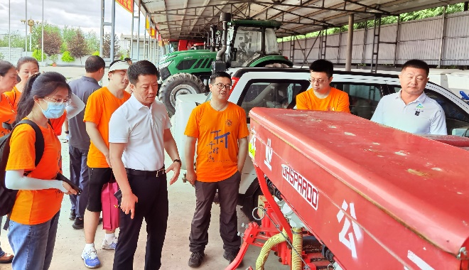 调研团队还来到了地方特色农业种植园区,参观学习地方农业种植知识并参与农作物采摘。随后,一行人来到地方绿色农业分拣运输中心,在与农机工程师的交流中深入了解绿色农产品从种植采摘到运输销售的全链条运作模式,开展了一堂别开生面、深入人心的劳动教育课。在大遐畜牧场,调研团队参观了富有代表性的东北规模集约化农业模式与大机械农业作业设备。