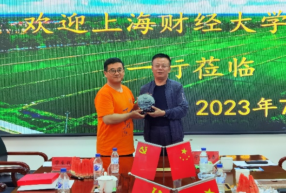 会上于振军副县长首先全方位介绍了乾安县发展现状与愿景展望,并提议与上海财经大学建立战略合作关系,随后刘庆生助理对上海财经大学与千村调查项目进行了详细介绍,对与乾安县的合作关系予以肯定,并对此次千村调查活动成果给予厚望。大遐畜牧场党委书记刘子良介绍了大遐畜牧场响应国家号召在集约规模式农业发展道路上取得的辉煌成就,彰显了敢闯敢为、勇为人先的开拓精神、实干精神与乡村振兴的坚定步伐。会上,刘庆生助理向乾安县副县长赠送学校纪念品和千村调查系列图书。