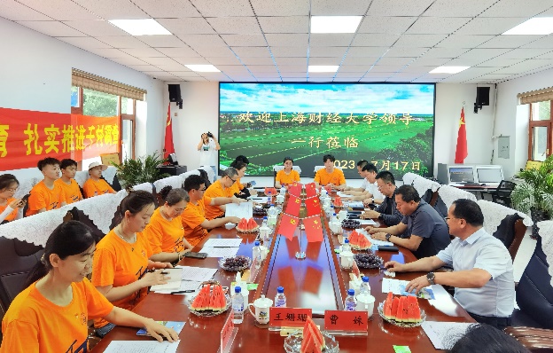 参观结束后,调研全体师生同乾安县政府副县长于振军、乾安县政府办公室副主任刘富臣、乾安县农业农村局局长冯立国、大遐畜牧场党委书记兼董事长刘子良等地方代表围绕本次千村调研开展座谈会。