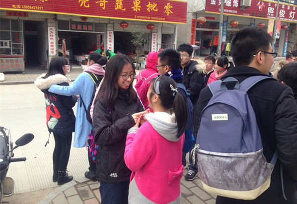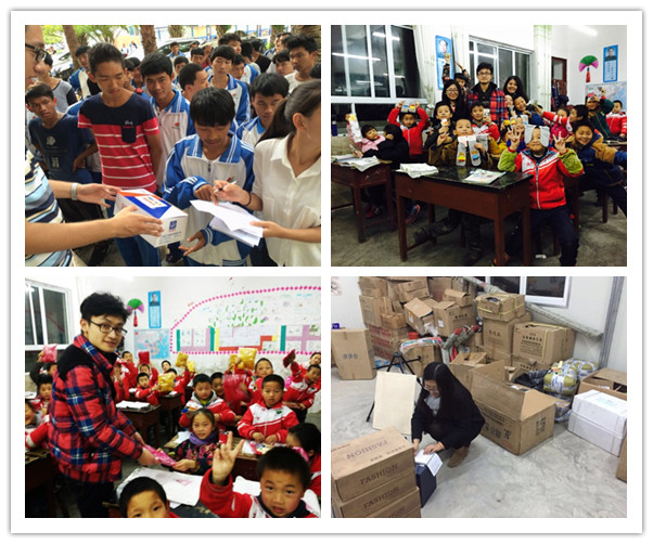 除了场馆服务志愿项目外,我校同学在假期间还积极参与了许多诸如音乐厅、琉璃艺术展、百老汇等艺术展会的志愿服务工作。胜任这类志愿服务岗位不仅需要服务的热情,同时也需要有相关领域的知识储备和专业技能。在服务社会的同时,志愿者们也在工作中感受到了艺术的魅力,开阔了视野,自身综合素质也得到了提高。 国际工商管理学院百老汇移动剧院志愿者头戴面具进行情景讲解 此外,上财志愿者们在假期间深入各个社区与福利机构,除了提供物质上的帮助外,志愿者们更是组织了多种多样的精彩活动,为孤寡老人,农民工子弟等社会弱势群体送去了一份温暖与快乐。 除了在市内参与公益活动外,志愿者们仍惦记着远在西部的小朋友们。2015年暑假期间,上财志愿者们曾前往安徽、甘肃、云南、贵州等地的偏远贫困地区进行爱心支教活动,为那里的孩子们送去了一份来自上财的爱心和祝福,让他们感受到来自社会的关怀与帮助。此次寒假期间,会计学院组织了“励志之旅寒假回访”活动,志愿者们再次来到了安徽省金寨县,了解当地孩子们这半年来的生活学习情况,为他们带去了礼物和一封封哥哥姐姐们写来的书信,鼓励孩子们好好学习,用知识改变命运,回报家庭与社会。 在千里之外的云南、贵州、新疆等地,也可以看到上财志愿者辛勤付出的身影。2015年度研究生支教团志愿者朱一琳、张锦涛等同学,在教学等本职工作外,也非常关心当地孩子们的生活。这个冬天,他们通过网络、媒体等渠道广泛联系社会爱心人士,发起了“暖冬计划”、“温暖小脚丫”等爱心活动,募集到了一批批的鞋袜、棉被、书籍等爱心物资,为那里的小朋友们送上了一份新年的祝福。 此外,为了加强学校的招生宣传力度,今年寒假,我校向除港澳台及西藏地区的全国所有省份派出了300余支招生宣传志愿者队伍。志愿者利用寒假返乡的机会,回到母校,将上财的招生政策、办学特色以及自己的上财的学习感受和学弟学妹们进行了充分的交流,为学校的宣传和发展贡献了自己的一份力量。