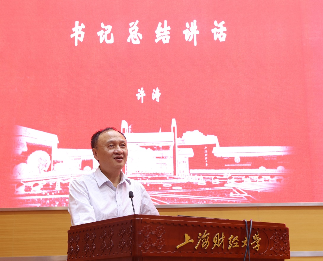 最后,许涛书记对本次大会作总结讲话。他回顾了《上海财经大学一流本科教育改革实施方案》,即“上财本科30条”的制定与实施历程,学校以问题为导向,召开多次本科教育工作改革领导小组会议,解决本科教育中的顽瘴痼疾,取得了一定的改革成效。面对新形势与新要求,仍要以问题为导向,以立德树人为根本任务,坚持“以本为本”的大学之道,把学生的成长和发展作为教育的出发点和落脚点,深入剖析问题,寻找解决方案。他强调,本科教育在高等教育中是具有战略地位的教育,学校应当坚决贯彻落实党的教育方针,党政合力,齐抓共管,以此次本科教育工作大会为契机,踔厉前行,久久为功,着力造就拔尖卓越创新人才,建设具有鲜明财经特色的世界一流大学,为早日实现教育强国目标而共同努力!