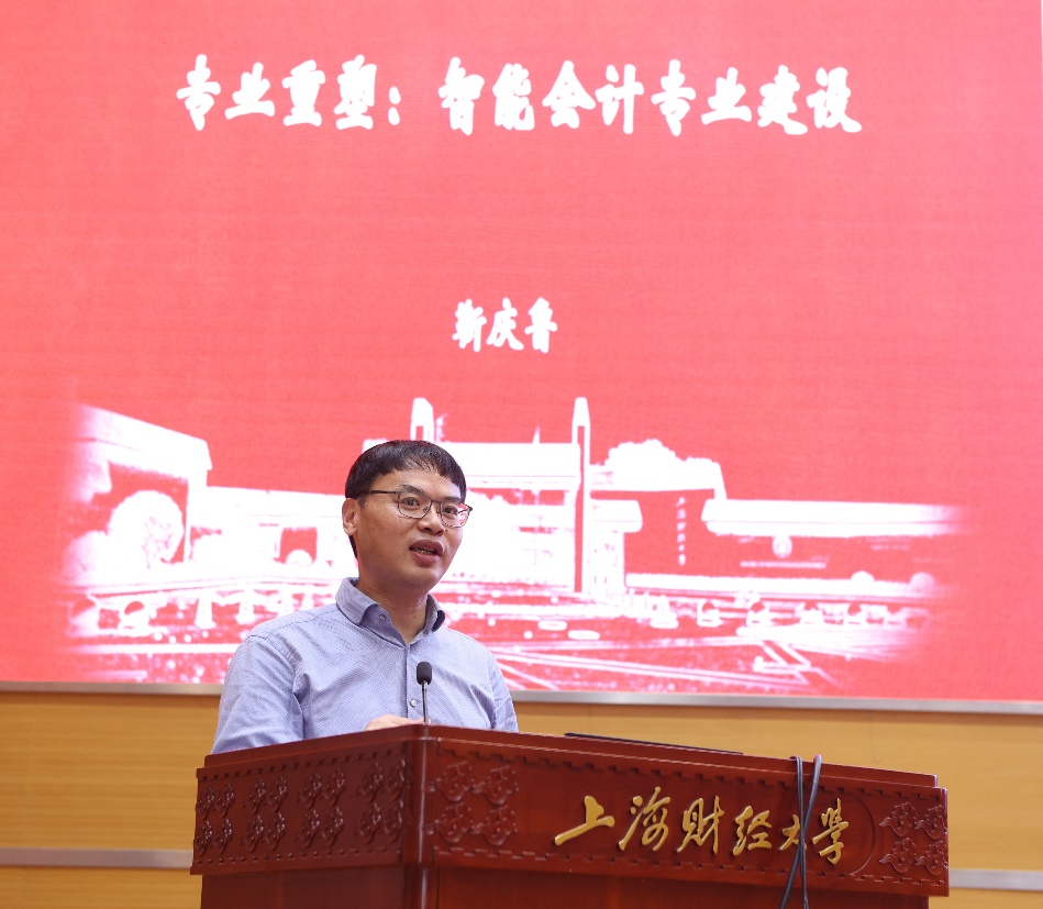 靳庆鲁院长以“专业重塑:智能会计专业建设”为主题,介绍了学院在数智时代背景下,在以“小微创,大手术”相结合的方式重塑人才培养体系及“引进与培育”相结合的方式提升学院教师教学和科研能力方面做出的探索和取得的成绩。靳院长说到,数智时代的人才培养要以数字经济为核心,除了专业基础能力外,更要培养学生的业财融合和数智战略分析能力。未来,会计学院将继续深化教学改革,牵头成立国家数智财经行业产教融合共同体,以六大平台为基础,立足“四化”协同,实现产教研的良性互动,健全智能化会计人才培养的长效机制。