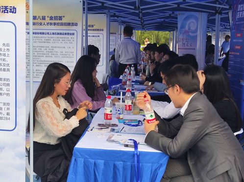 10月10日下午,“金招荟”上海金融行业人才秋季校园招聘会在我校顺利举办,90家金融机构和金融科技企业到场参加,涵盖银行、证券、保险、基金、期货、融资租赁、金融科技等诸多业态,提供138种多达3600余个工作岗位,为有志于从事金融行业的学子们开放一展身手的舞台。吸引校内外近千名学生参加,也有北京大学、复旦大学、浙江大学、中国科学技术大学、香港大学、约翰霍普金斯大学、宾夕法尼亚大学、曼彻斯特大学等55所海内外名校学子前来参加。