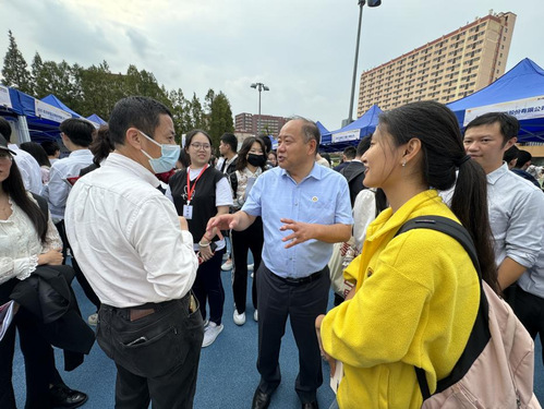 招聘会持续进行,现场气氛高涨。招聘负责人与学生们现场开展了简短的招聘面谈,解答学生相关的求职问题并充分了解就业意向。校党委副书记朱鸣雄也亲临招聘会一线,现场询问学生参会感受,关注学生参会情况与秋招动态,并与多家到场用人单位沟通,充分了解学生与企业双方需求,并对我校持续开展校园招聘活动提出进一步工作要求。