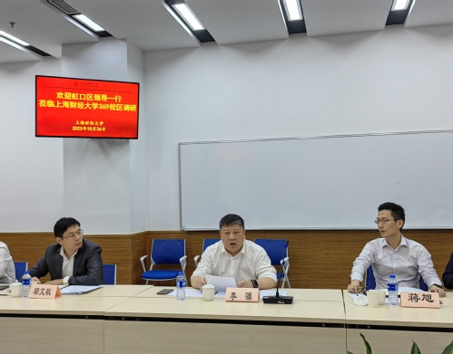 10月26日,虹口区金融工作局局长李骥带队来我校369校区调研座谈,推动虹口区与我校进一步深化区校合作相关事宜。上海财经大学校长助理刘莉亚会见李骥局长一行。虹口区金融工作局、发改委、教育局、科委、规划资源局、金融服务中心等单位领导,上海财经大学发展规划处、基本建设处、信息管理与工程学院、金融学院、商学院、会计学院、终身教育学院、科技园等相关单位领导参加活动。