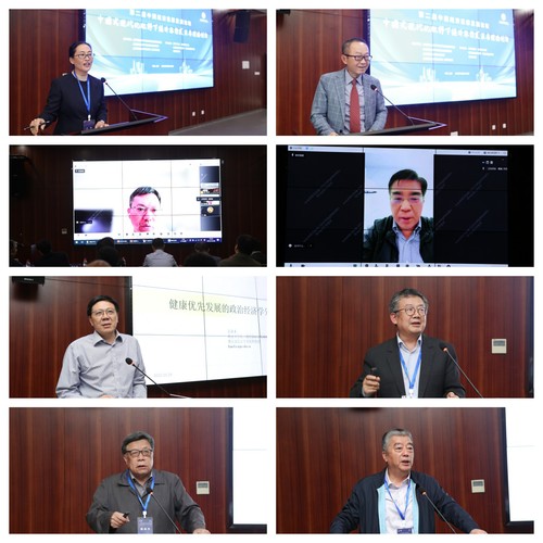 后半场,上海财经大学科研处处长刘志阳教授,中南财经政法大学瞿商教授,江苏省人大财经委员会原主任江建平,三亚学院管理学院陈祥敏教授,上海财经大学中国经济思想发展研究院、经济学院伍山林教授,云南大学经济学院柴毅副教授等分别作题为《儒家文化与社会创业:基于量化历史的考察》《三次赶考与中国共产党掣画和艰辛探索中国式现代化的历史轨迹》《从发展是硬道理到高质发展真功夫——中国式现代化视野下的中国特色社会主义政治经济学》《“中国式现代化”与中国现代管理理论——中国现代管理理论的创立与发展》《经济战略视野下的中国式现代化》《治生视域下中国传统微观政治经济学体系初探》的主旨报告。