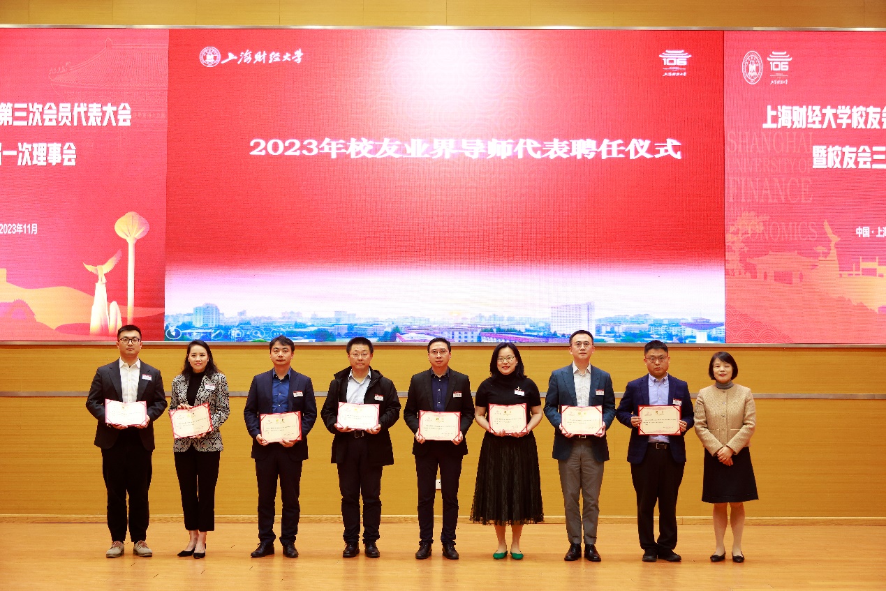会上还举行了2023年校友业界导师代表聘任仪式,姚玲珍副校长为朱宏强等10位业界导师代表颁发了聘书。