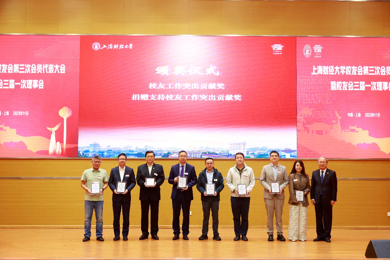 会议对校友工作先进组织及个人进行了表彰。公共经济与管理学院分会等11个备案校友组织获得了“2022年度优秀备案校友组织”,imba分会等19个备案校友组织获得了“2022年度特色备案校友组织”。杨青等12位校友获得“2022年度校友工作突出贡献奖”,干胜道等80名校友获得“2022年度校友工作热心奉献奖”,陈戈等四位校友获得“2022年度捐赠支持校友工作突出贡献奖”,丁建阳等13位校友获得“2022年度捐赠支持校友工作热心贡献奖”。方华副校长为优秀备案校友组织和校友工作突出贡献奖获得者颁发了证书。