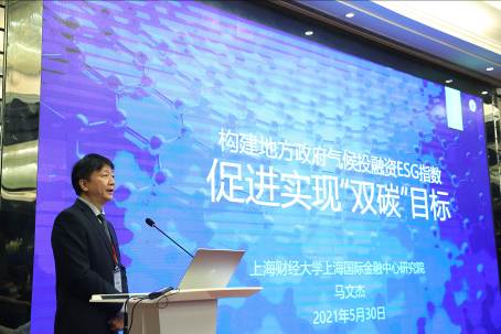 领导致辞结束后,大会进入最为激动人心的指数发布环节。指数发布环节由上海财经大学上海国际金融中心研究院荣誉院长赵晓菊教授主持,上海财经大学上海国际金融中心研究院院长马文杰教授首先介绍了研究院自主编制的“地方政府气候投融资ESG指数”的编制情况和编制结果。该指数于2020年首次发布,由研究院赵晓菊院长与马文杰院长共同在气候投融资专委会研究项目成果基础上继续研发而成,首次发布以“我国气候投融资信用指数(长三角区域指数)”命名。在去年发布的指数基础上,马文杰院长带领研究团队继续开展进一步的研究,并将指数更名为“地方政府气候投融资ESG指数”。