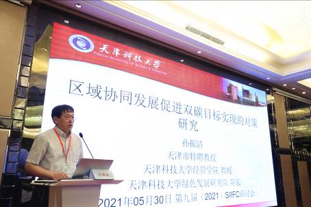天津科技大学经济与管理学院教授、天津科技大学绿色发展研究院院长孙振清教授以“区域协同发展促进双碳目标实现的对策研究”为题目做了主旨演讲。孙振清教授就如何推动双碳目标的实现提出了如下六方面的建议:第一,提高领导重视度,持续强化政策执行力度;第二,扩大全国碳市场覆盖范围和纳入行业;第三,充分发挥金融作用,引导绿色投资;第四,加快零碳低碳负碳技术研发推广;第五,加大区域内外融合与协同和政策协;第六,强化透明度机制实施,增加信息透明度。