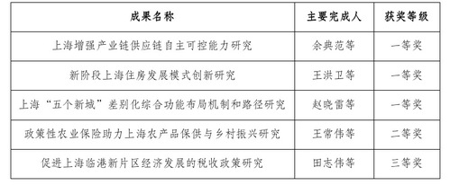 附:第十四届上海市决策咨询研究成果奖获奖名单