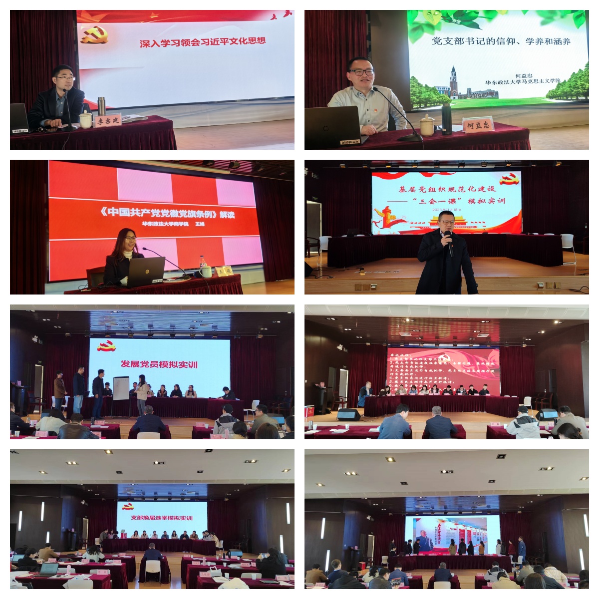 本次培训班精心设计了专题辅导、经验分享、分组讨论、模拟实训、现场教学等多种学习形式和培训课程。周国良部长为培训班做了题为《上海财经大学融合式特色党建引领高校事业发展的实践探索》的开班讲座;全国青联委员、中共上海市委党校马克思主义学院副院长李宗建做题为《深入学习领会习近平文化思想》的专题讲座;华东政法大学马克思主义学院党委书记何益忠做题为《党支部书记的信仰、学养和涵养》的专题辅导;华东政法大学商学院党委副书记、副院长王娟对《中国共产党党徽党旗条例》做了深入解读;培训班学员分成4个组分别讨论并现场进行了“三会一课”的模拟实训,上海市党建研究会特邀研究员、上海科技管理干部学院教授陈荣武结合基层党组织规范化建设一一进行了点评辅导和经验分享。培训班还安排了“乘风扬帆,勇立潮头——北外滩党史、经济社会发展新实践”的现场教学,中共上海市虹口区委党校副教授李银娥带领学员边走边看北外滩的标志性建筑,深入学习地标建筑背后的党史故事。