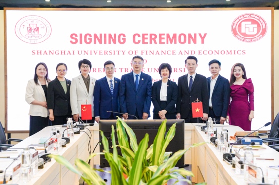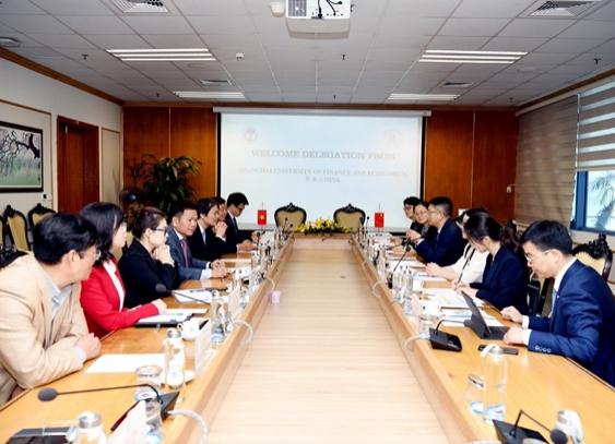 在访问越南国民经济大学期间,何鹏程副书记一行与该校校长范红章、副校长阮成孝、综合处处长裴德勇、财务处处长范壁支、商学院院长李氏兰香、监察处处长杜春勇、国交处处长陶青松和副处长范士龙进行了会谈。双方就人才培养、国际化建设、内部治理监察体系等展开了交流与分享。何书记提及了我校在数字经济、金融科技、绿色金融等方面的布局探索,期待在中越关系良好的发展势头下,积极开展上述前沿领域的合作研究。会谈期间,何鹏程副书记与范红章校长代表两校新签校级合作谅解备忘录及学生交换协议,董静院长与陶青松处长代表双方新签院级留学生短期项目合作协议,两校将加强各领域合作,加快落实留学生短期合作项目。