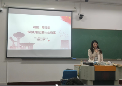 为深入学习贯彻习近平文化思想,稳步推进《上海财经大学思想政治理论课综合改革方案3.0》具体实施,11月13日至11月23日,上海财经大学马克思主义学院《思想道德与法治》教研室与校干部人事档案工作办公室,将人事档案与诚信教育相结合,联合举办了以“诚信:用行动书写好自己的人生档案”为主题的大思政课,有效地将“档案诚信教育”融入进《思想道德与法治》课堂。