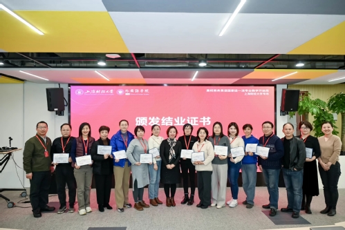闭幕式上,中南财经政法大学、西南财经大学、上海财经大学浙江学院等参会教师进行了互动交流,表示教学科研不是闭门造车,要通过进一步交流互鉴,推动语言专业转型和技术的教育转型。上海财经大学外国语学院赵珂院长为参会教师颁发结业证书。