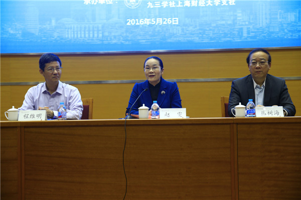 丛树海书记在致词中高度评价了九三学社作为参政党在建设中国特色社会主义国家中发挥的重要作用,感谢九三学社上海市委和赵雯主委对我校各项工作的长期关心和支持。九三学社财大组织具有爱国爱校的优良传统和光荣历史,自1952年创建以来,“涌现出以汪鸿鼎、褚凤仪、陈善林、黄树颜、黄颂等为代表的一大批优秀人物,无论是在教学、科研、管理等本职工作上,还是在参政议政、服务社会等方面,都发挥了很好的作用。” 本次论坛以“高校与上海科创中心建设”为主题,围绕高校如何对接国家战略,积极投身上海科技创新中心建设所面临的机遇和挑战等问题展开交流和讨论,具有重要的理论价值和现实意义。上海财经大学也会积极迎接挑战,对接上海经济社会发展战略与重大需求,发挥特色与优势,通过培养创新人才、提升研究能力和决策咨询能力,为上海科创中心建设提供人才支撑和智力支持。