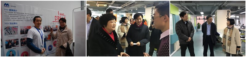 12月27日下午,上海财经大学创客空间热闹非凡,人声鼎沸。空间正式迎来了我校第一批35支入驻创业团队,同时也迎来了参加“五角场”创业新苗新锐评选大赛的嘉宾。杨浦区副区长李雅平、上海市就业促进中心主任张得志与樊丽明校长、刘兰娟副校长、姚玲珍副校长参观了上财创客空间,与我校创客学子进行了亲切交谈。上海市就促中心副主任杨永华,杨浦区金融服务办公室主任宋南晖、杨浦区投资促进服务中心主任李阿铭、五角场街道书记余翔、五角场街道主任李正明、杨浦区科委副主任马庆、杨浦区人社局副书记杨春雷等嘉宾陪同参观。我校国际工商管理学院院长鞠建东、创业学院执行副院长刘志阳等参加会见。