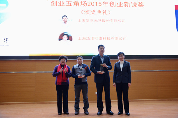 本次“创业五角场”2015年创业新苗、新锐评选活动精彩纷呈,12强各有特色。樊丽明校长、李雅平副区长、姚玲珍副校长等领导为获奖者颁发了荣誉证书和奖杯。