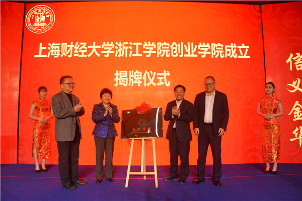 仪式上,马洪院长宣读了《关于成立上海财经大学浙江学院创业学院的通知》,樊丽明校长、赛伯乐(中国)投资集团总裁张伟宏、学院党委书记黄宏伟、院长马洪共同为创业学院揭牌。金华市人力资源和社会保障局副局长徐金韩为学院青创工厂授牌,党委副书记兼创业学院院长倪志兴作为学院代表受牌。