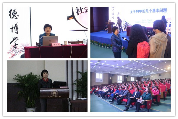 揭牌仪式结束后,樊丽明校长一行应邀为学院师生带来四场专题报告,就当前社会经济领域热点问题答疑释惑。樊丽明教授作题为“我国实施PPP的几个基本问题”报告,姚玲珍教授讲述“中国房地产市场的过去、现在与未来”,朱红军教授带领大家“从会计角度看资本市场的利益分配”,程霖教授阐述“中国传统经济思想的历史地位与现代意义”。