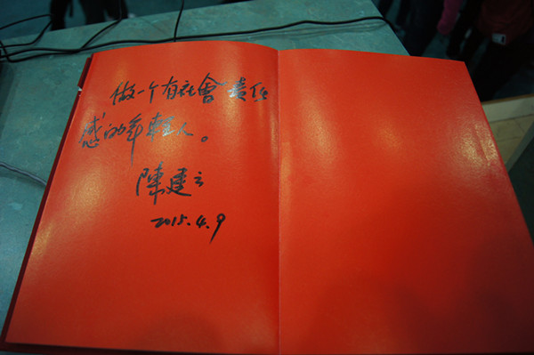 陈教授首先总体概括了本次演讲的核心内容,即通过最近十年中国传媒在司法领域的优秀表现和不足之处来探索应该如何看待传媒与司法的关系。陈教授指出,新闻自由是政治民主的前提,而司法独立则是司法公正的前提。随后,陈老师详细说明了怎样才能保证司法的独立,比如对法官实行终身制,法官不受其他权力的干预等。接下来,陈教授通过丰富的案例向同学们展现了传媒监督扩大个案影响,宣扬法治观念,变革公共政策,推动法治进程,发挥监督之力,促进个案公正等作用。陈教授表示相信未来媒介与司法会形成更加良性的关系,促进社会的公平公正! 讲座结束后陈教授与现场同学进行了积极互动,对“复旦投毒案”以及媒体在其中扮演的角色等问题进行了耐心解答,最后陈教授为财大学子书写寄语----“做一个有责任感的年轻人”。