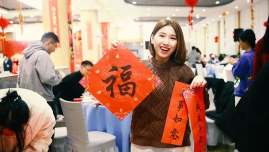 年夜饭活动现场还设置了民俗文化活动体验区,中外师生饶有兴致,踊跃参与,一起拼接手工灯笼、包饺子、书写对联福字,现场欢声笑语,气氛温馨祥和,与会师生充分感受到了中华传统文化的独特魅力和中华传统佳节的喜庆热烈。
