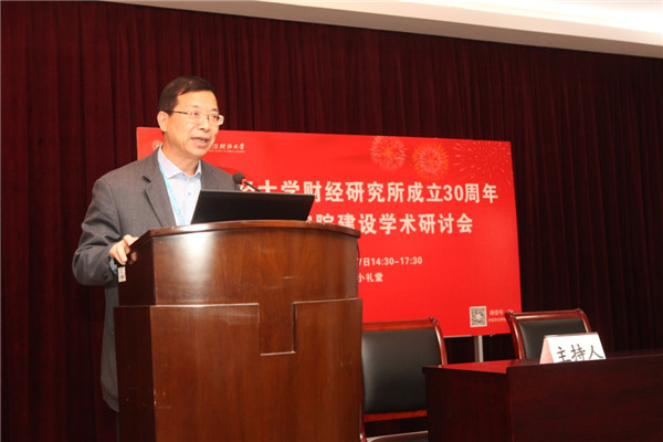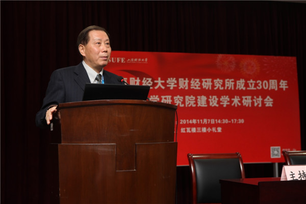 随后,财经研究所原所长储敏伟教授发表了热情洋溢的致辞,总结了财经研究所在教书育人方面取得的成就,并追忆研究所的创建者和支持者。储敏伟教授指出:从财经研究所办所之初起,办所理念与目标定位都很清晰,为外向性、应用性、综合性,以及体制上的集合性。坚持学术型研究与应用型研究并重,出成果和出人才并重。最后,砥砺财经研究所应发扬传统,深化研究,建设学术高地,培育咨询服务智库。