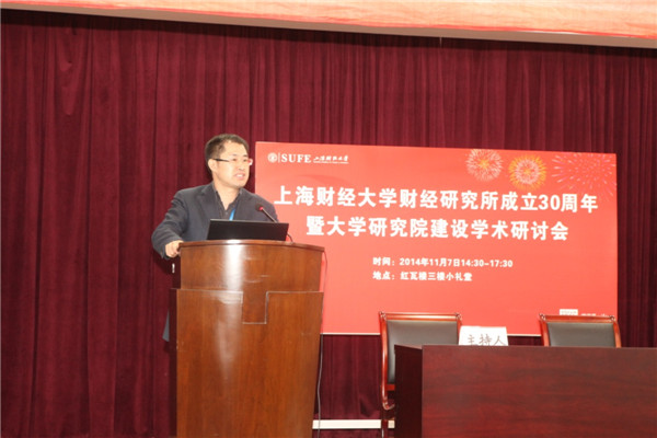 11月7日下午,在庆祝上海财经大学建校97周年之际,财经研究所、城市与区域科学学院举办了“上海财经大学财经研究所成立30周年暨大学研究院建设学术研讨会”,校党委书记丛树海教授、副校长蒋传海教授、财经研究所原所长储敏伟教授、曾在财经研究所工作过的部分领导和老师、财经研究所校友代表以及财经研究所全体师生等共同参加本次会议。会议由财经研究所党总支书记豆建民教授主持。