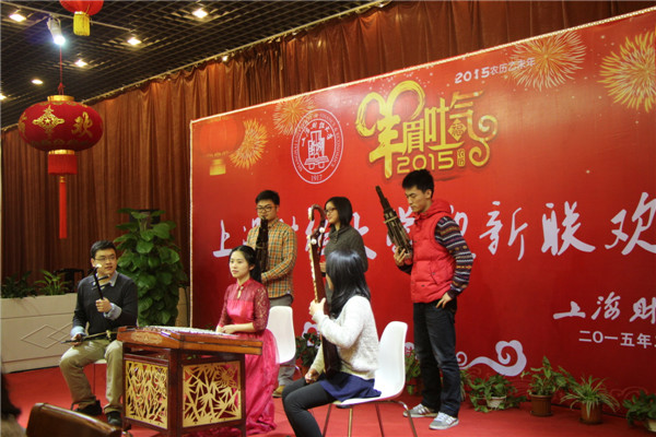 2月13日晚,我校风味餐厅充满着浓浓的节日气氛,校领导丛树海、刘永章、刘兰娟、方华、黄颖、蒋传海、陈信元、姚玲珍以及相关职能部门负责人、各学院(所)党政领导、专兼职辅导员与267名春节留校学生欢聚一堂,举行2015年春节留校学生迎新年联欢会,共话新春,共同迎接农历羊年的到来。