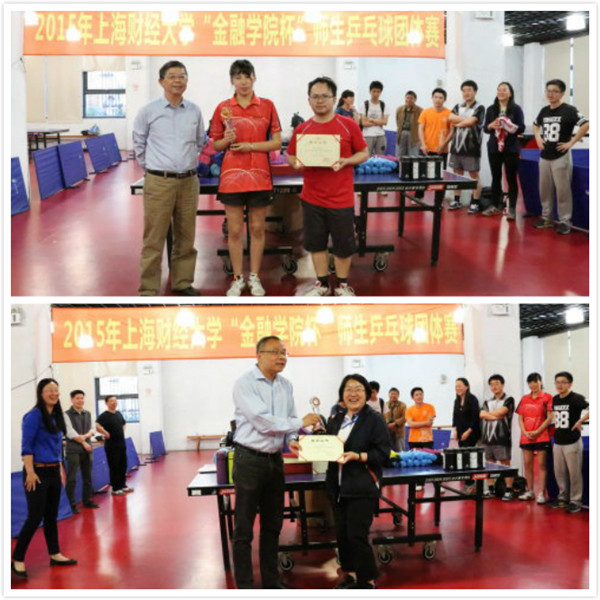 5月4日和12日,由上海财经大学工会主办,金融学院、教工乒协、体育教学部协办的“金融学院杯”师生乒乓球团体赛在我校综合体育馆乒乓房举行。十六支运动队的150余名教职工及学生参加比赛,经过两个下午的激励角逐金融学院荣获比赛冠军,机关、公共经济与管理学院分获第二名与第三名。