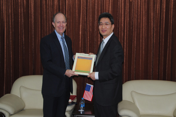 会谈中,周仲飞副校长介绍了我校近年来在学术交流、海外校友、海外学习项目等高等教育国际化领域的建设和发展情况,并重点阐明了通过这些渠道在拓展海外合作关系,扩大学校国际影响力,学习海外先进经验等方面取得的国际化办学成果。葛瑞風总领事对周仲飞副校长的热情接待表示感谢,并介绍了美国驻沪总领事馆多年来在推动中美高等教育文化交流、促进中美院校合作、分享优势教育资源等多重相关领域所起到的积极作用。双方还就海外培训、孔子学院、国际化师资队伍建设等共同感兴趣的话题深入交换了意见,并一致肯定了日后在这些领域开展全方位合作的可能性。