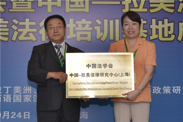 会上,中国法学会副会长张鸣起为中国—拉美法律研究中心(上海)授牌,上海财经大学副校长刘兰娟接牌。外交部拉美司参赞张润为中国—拉美法律培训基地(上海)授牌,上海财经大学校长助理郑少华接牌。
