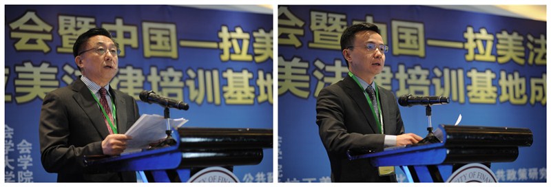 论坛开幕式由中国法学会对外联络部主任谷昭民主持。在开幕式上,中国法学会副会长张鸣起先生回顾了中国与拉美国家进行经贸往来的历史渊源,着重介绍了中国法学会与拉美国家进行法律交流的情况。上海市法学会会长陈旭先生指出,中国—拉美法律研究中心(上海)和中国—拉美法律培训基地(上海)的成立将成为中拉对话与合作的新平台。外交部拉美司参赞张润先生介绍了中拉关系的整体情况和最新法律合作进展,体现出高层互访频繁互信度提高、经贸合作扩大互利共赢、人文交流丰富多彩、整体合作取得突破等特点,中拉关系进入了新阶段。厄瓜多尔驻上海领事馆总领事卡林纳女士指出,中厄在经济和法律合作上正面临着更好的发展机会,并表达了与中国进行深度合作的愿望。哥伦比亚驻上海领事馆副领事卡米拉·郭美兹·奥尔玛莎女士介绍了哥伦比亚的发展概况,尤其是2015年恰逢中哥建交35周年,哥中关系正处于快速发展期。上海政法学院校长周仲飞教授介绍了中国—上海合作组织国际司法交流合作培训基地和最高人民法院“一路一带”司法研究基地(上海政法学院)的工作进展情况。上海财经大学副校长刘兰娟教授对研讨会暨研究中心和培训基地的成立表示祝贺。上海财经大学副校长刘兰娟教授着重介绍了上财法学院在自贸区法治科学研究和人才培养等方面取得的成绩及其影响力,指出中国—拉美法律研究中心和培训基地落户上财将进一步提升其国际影响力。
