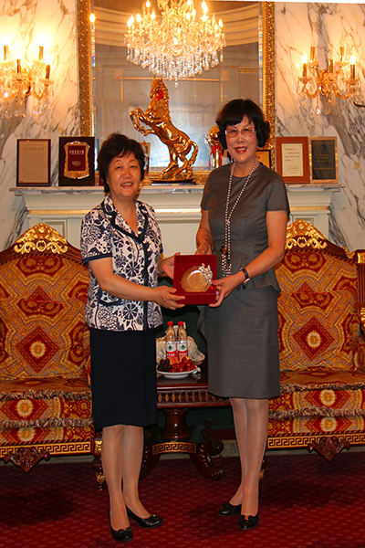 7月28日下午,樊丽明校长、方华副校长一行赴上海万丰锦源投资有限公司总部拜访了万丰奥特控股集团董事长陈爱莲女士。