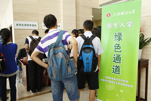 二、报到日当天,学校开通新生入学“绿色通道”,让无力筹措学费的新生可以缓缴学费顺利报到注册,同时开展学校资助体系政策宣传、咨询服务和助学贷款申请受理,本科生每人每年可贷款8000元,研究生每人每年可贷款12000元,本着以学生为本的理念,不断优化服务,对绿色通道的办理进行细致安排:精简国家助学贷款办理流程,加快申请速度;增设生源地信用助学贷款回执录入办理点,让校园地国家助学贷款和生源地助学贷款两类贷款齐头并进;向走“绿色通道”入学的家庭经济困难新生发放临时伙食补贴,补贴标准200元/人;开展勤工助学咨询服务,接受有勤工助学意向的新生现场报名。