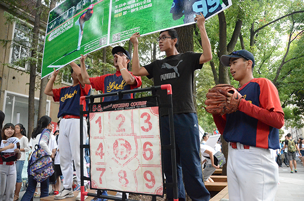 在招新现场,各大社团各显神通,互不示弱。稻草人户外运动协会当街搭起了帐篷吸引眼球;乒乓球协会放置了迷你乒乓桌,供同学试玩;汉服社美丽的社长云髻高挽,裙裾迎风,尽显古典之美;学术类的社员穿上正装宣传,体现专业精神;Freesky的劲歌热舞,将来往的同学的激情点燃。横跨学术、文艺、体育、实践和公益这五大类的78个社团的精彩演绎,彰显了朝气蓬勃的财大社团文化和社团精神!
