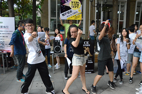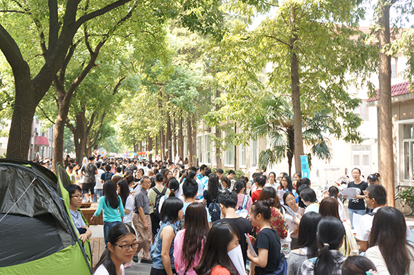 相比往年的百团大战,今年的社团招新方式有了较大的变动。为了准确有序地进行上海财经大学第二课堂学分认证工作,本学期的社团招新报名由社团联合会统一登记注册,并且新增了报名服务窗口,以便同学们顺利地报名自己心仪的社团,也为社团招新增加了人气。