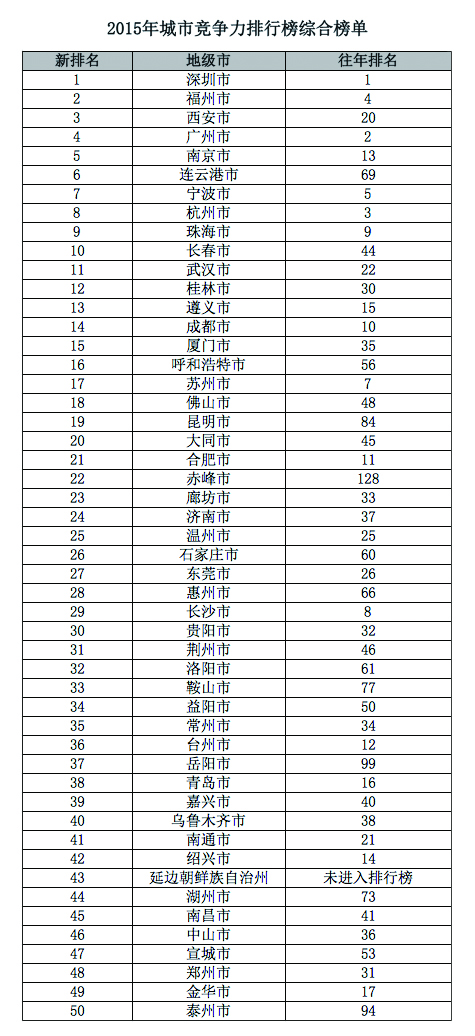 2015年城市竞争力排名呈现出来的变化,在一定程度上正是反映了中国经济转型和结构调整的现状。以钢铁、水泥等传统产业为主的城市将很难重回城市竞争力榜单,而医药、消费、环保、传媒等新兴产业占比较高的城市开始在竞争力排行榜中崭露头角。