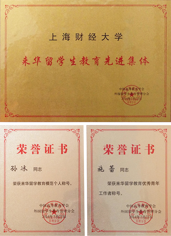 近日,中国高等教育学会外国留学生教育管理分会在辽宁大学举办了2014年学术年会,会议主要表彰了对我国来华留学教育工作有重要贡献的集体及个人。学会会长刘京辉、教育部国际合作与交流司副司长方军等出席了此次会议。在本次大会上,我校荣获全国“来华留学生教育先进集体”称号(全国共98所),国际文化交流学院孙冰院长荣获“来华留学教育模范个人”称号(全国共214名),施蕾老师荣获“来华留学教育优秀青年工作者”称号(全国共70名)。