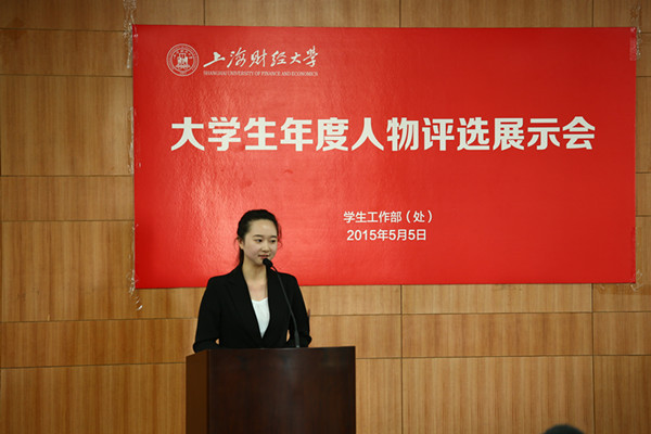 5月5日下午,上海财经大学大学生年度人物评选展示会在武东路校区同德楼一楼报告厅顺利举行,校党委副书记刘永章、校党委宣传部部长章益国、学生工作部(处)长冯润民、校团委书记褚华以及来自部分学院的党政领导、职能部门领导、教师代表以及学生代表作为评委出席了本次评选展示会,并与现场的100多位同学一起聆听了同学们的演讲。