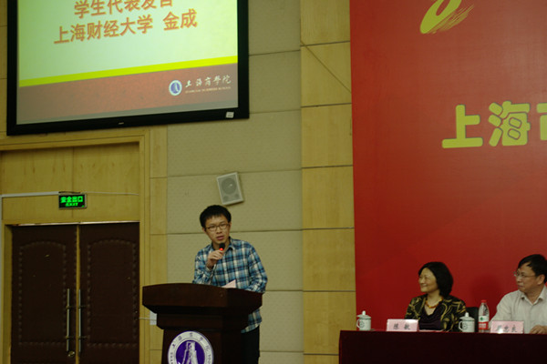 在颁奖大会上,一等奖获得者我校2011级金融学专业金成同学代表全体参赛学生作了交流发言。他介绍了小组成员通力合作、攻坚克难的创作过程,感谢指导教师韩冬梅教授的悉心辅导和学校创造的良好条件。在场听众为他潜心研究和专研精神送去阵阵掌声。