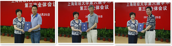 会议初始,樊丽明校长向王能教授、王晓群教授和岳劲峰教授补发了学术委员会委员聘书并向三位表示祝贺。