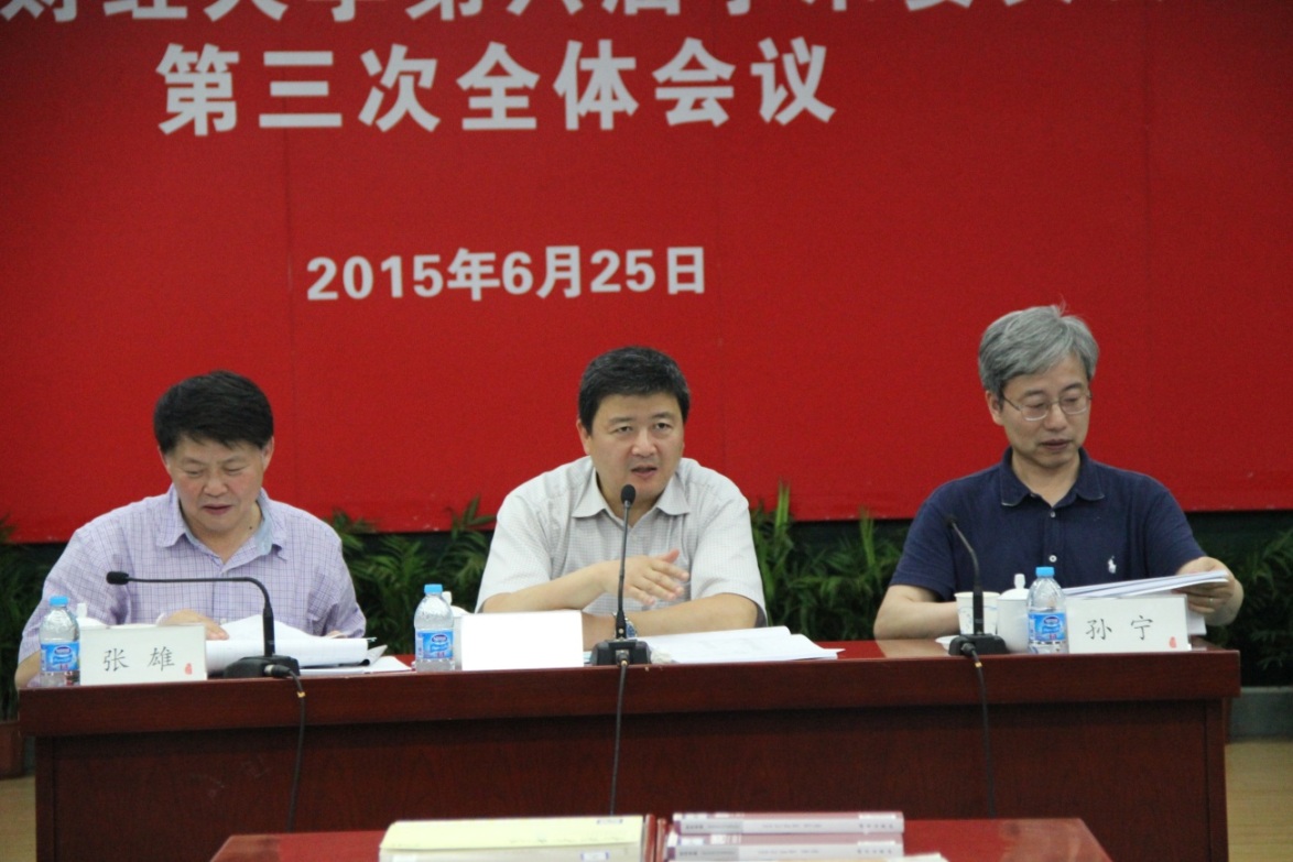 6月25日下午,上海财经大学第六届学术委员会第三次全体会议在国定路校区行政楼召开。校长樊丽明教授,校学术委员会主任委员孙铮教授,副主任委员张雄教授、孙宁教授及学术委员会委员共31人出席会议,相关职能部门负责人列席会议。